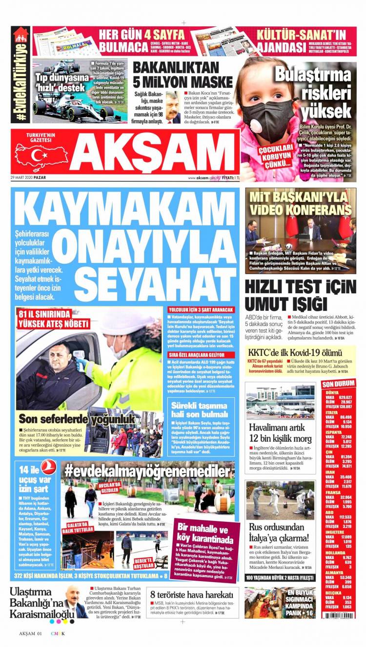 Günün Ulusal Gazete Manşetleri – 29 03 2020Ulusal Gazetelerin 1. sayfaları Haber Merkezi Yayınlanma: 29.03.2020 - 11:50 Son güncellenme: 28.01.2025 - 23:01 Akşam
