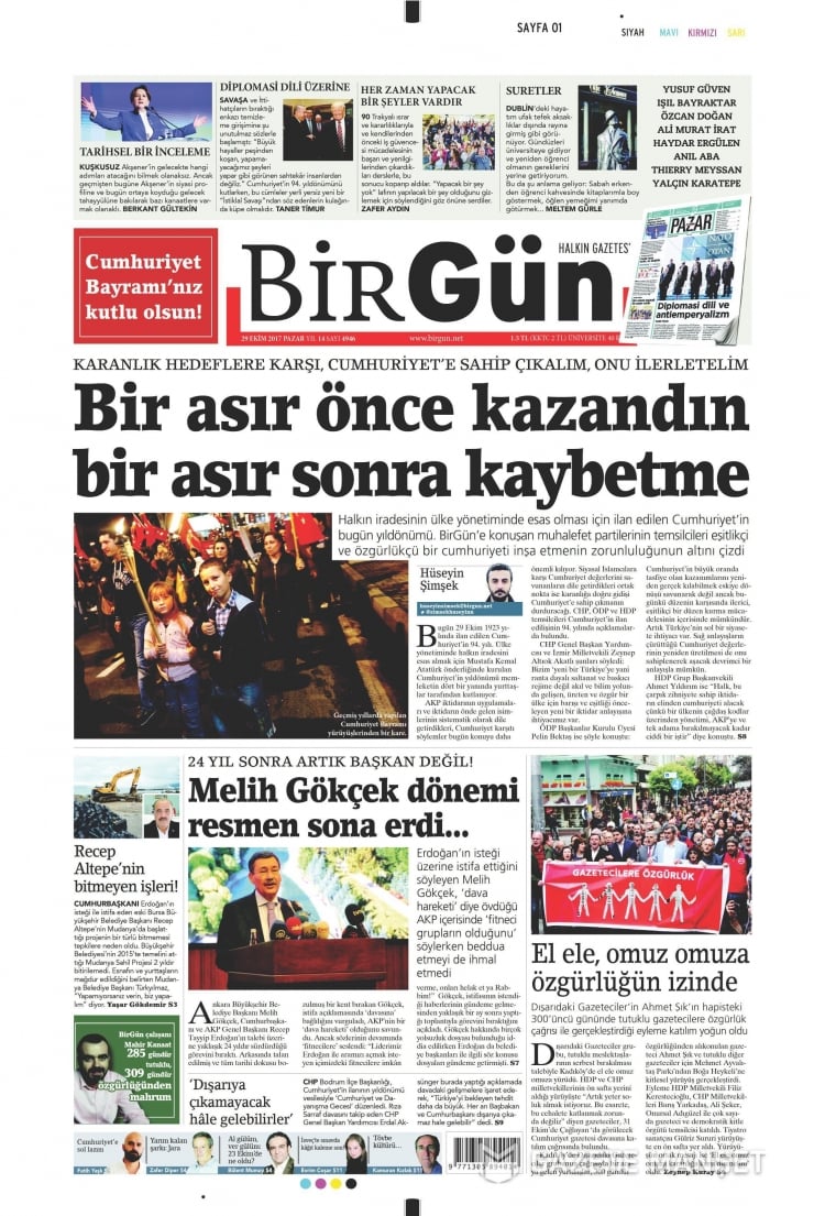 * Günün Ulusal Gazete Manşetleri – 29 10 2017Ulusal Gazetelerin 1. sayfaları Haber Merkezi Yayınlanma: 29.10.2017 - 11:50 Son güncellenme: 29.01.2025 - 18:04 Birgün