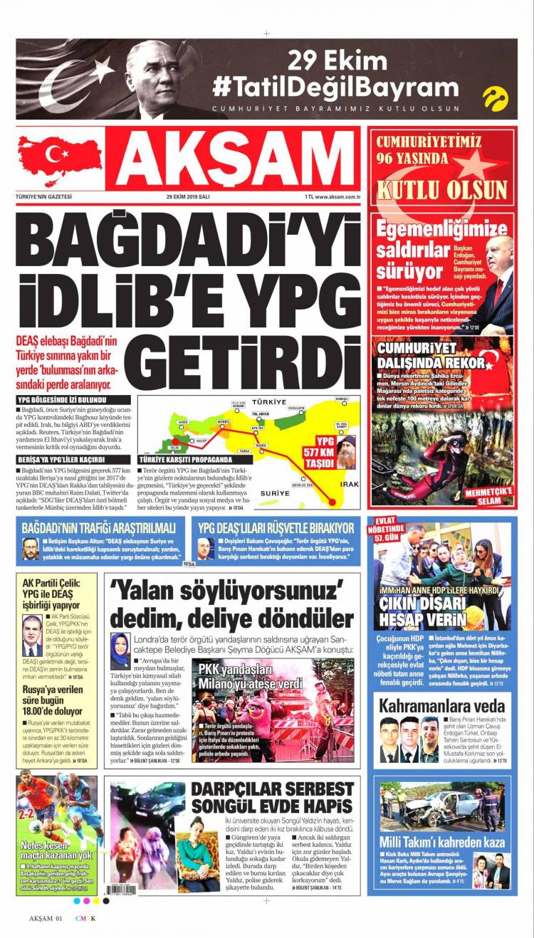 * Günün Ulusal Gazete Manşetleri – 29 10 2019Ulusal Gazetelerin 1. sayfaları Haber Merkezi Yayınlanma: 29.10.2019 - 11:50 Son güncellenme: 29.01.2025 - 00:44 Akşam