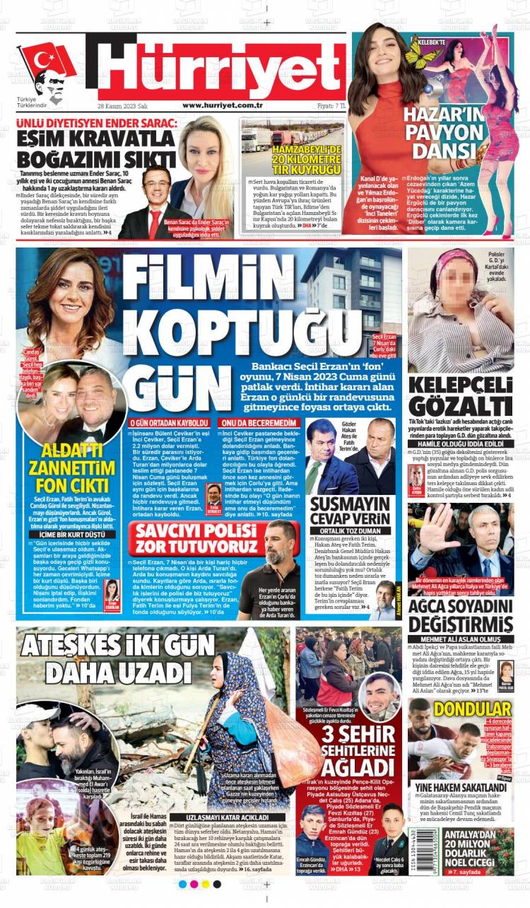 * Günün Ulusal Gazete Manşetleri – 29 11 2023Ulusal Gazetelerin 1. sayfaları Haber Merkezi Yayınlanma: 29.11.2023 - 11:50 Son güncellenme: 28.01.2025 - 04:14 Hürriyet