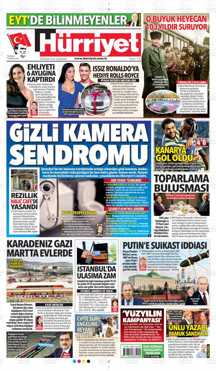 * Günün Ulusal Gazete Manşetleri – 29 12 2022Ulusal Gazetelerin 1. sayfaları Haber Merkezi Yayınlanma: 29.12.2022 - 11:50 Son güncellenme: 28.01.2025 - 08:46 Hürriyet