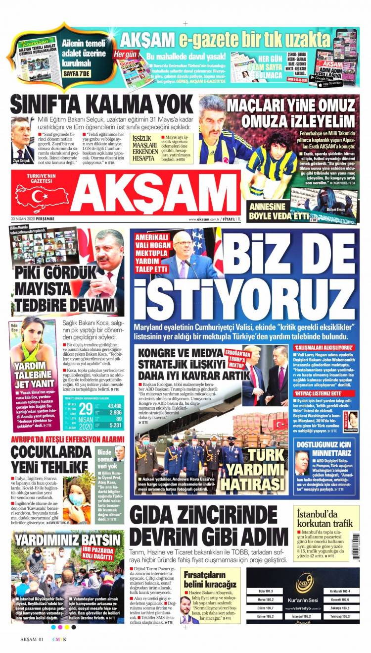 * Günün Ulusal Gazete Manşetleri – 30 04 2020Ulusal Gazetelerin 1. sayfaları Haber Merkezi Yayınlanma: 30.04.2020 - 11:50 Son güncellenme: 28.01.2025 - 22:35 Akşam