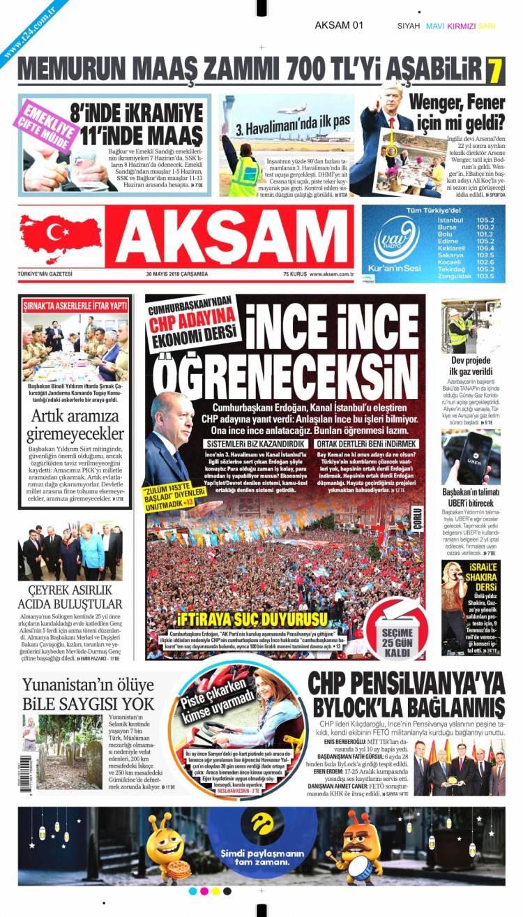 Günün Ulusal Gazete Manşetleri – 30 05 2018Ulusal Gazetelerin 1. sayfaları Haber Merkezi Yayınlanma: 30.05.2018 - 11:50 Son güncellenme: 29.01.2025 - 09:29 Akşam