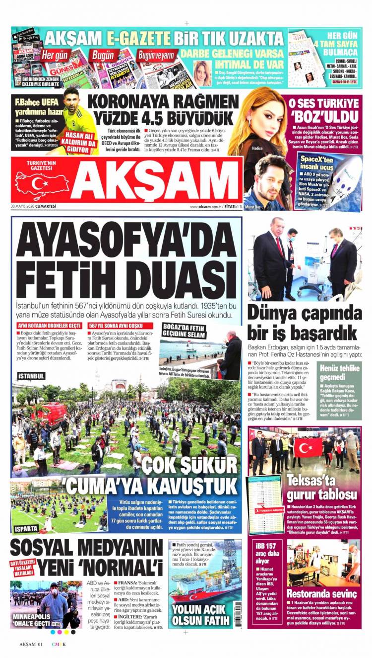 Günün Ulusal Gazete Manşetleri – 30 05 2020Ulusal Gazetelerin 1. sayfaları Haber Merkezi Yayınlanma: 30.05.2020 - 11:50 Son güncellenme: 28.01.2025 - 22:05 Akşam
