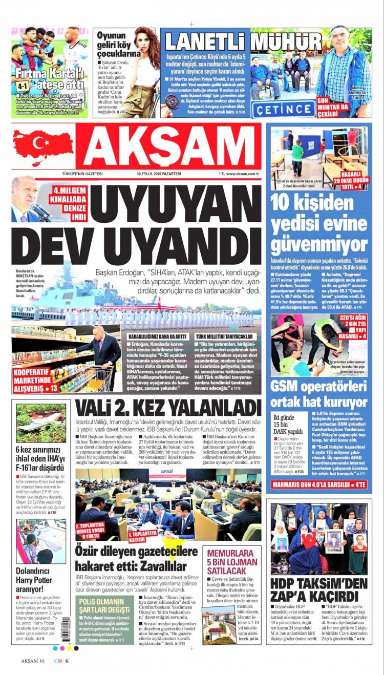 * Günün Ulusal Gazete Manşetleri – 30 09 2019Ulusal Gazetelerin 1. sayfaları Haber Merkezi Yayınlanma: 30.09.2019 - 11:50 Son güncellenme: 29.01.2025 - 01:09 Akşam