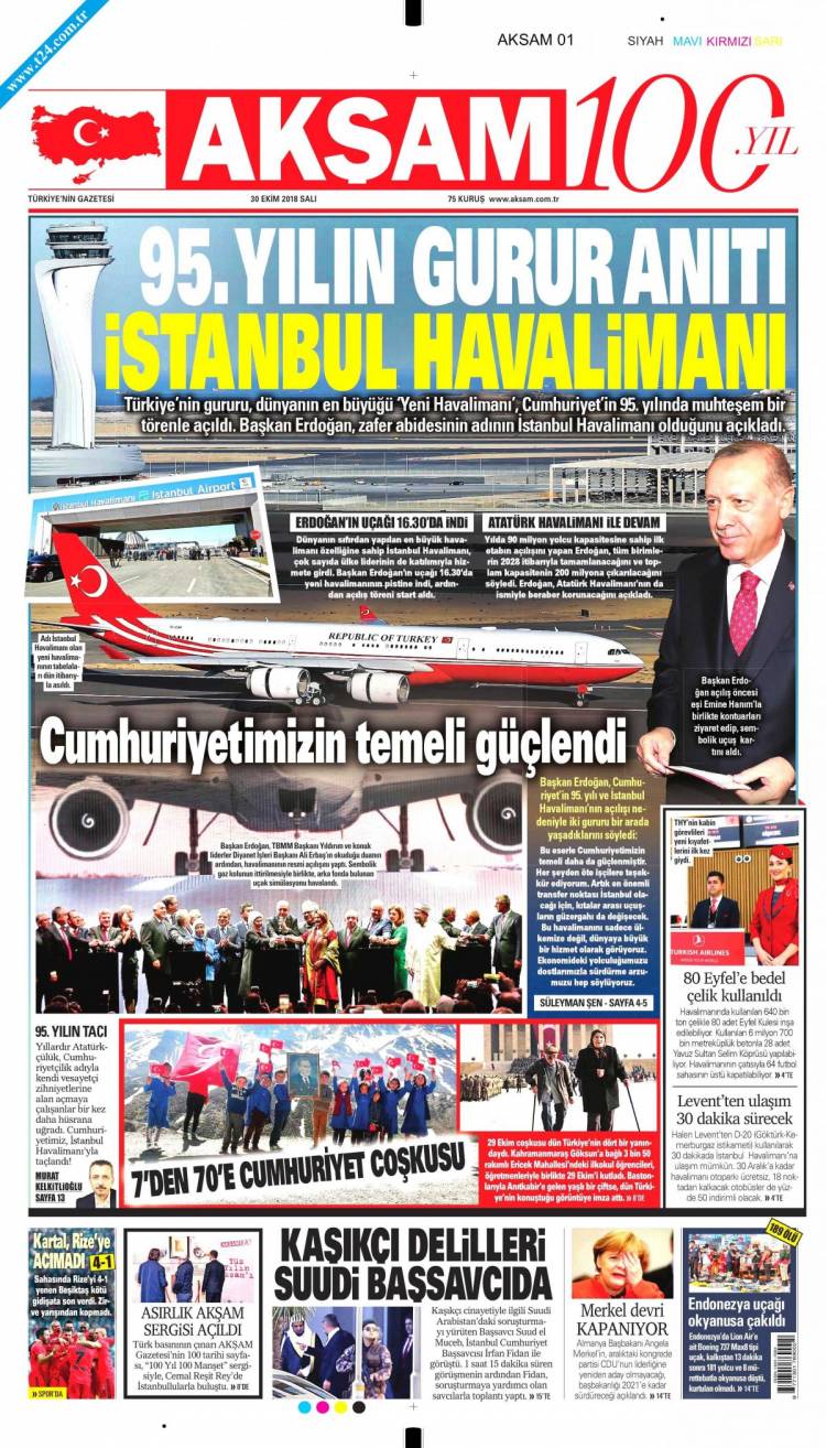 * Günün Ulusal Gazete Manşetleri – 30 10 2018Ulusal Gazetelerin 1. sayfaları Haber Merkezi Yayınlanma: 30.10.2018 - 11:50 Son güncellenme: 29.01.2025 - 06:21 Akşam