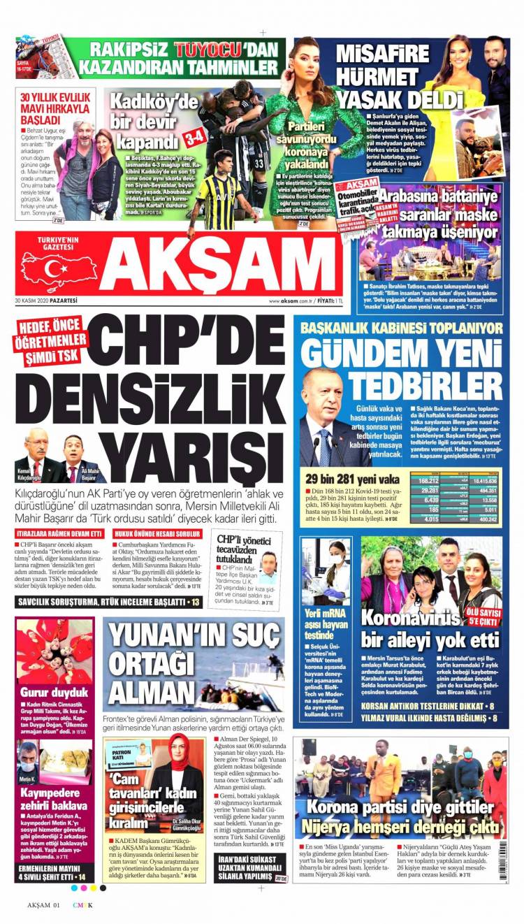 Günün Ulusal Gazete Manşetleri – 30 11 2020Ulusal Gazetelerin 1. sayfaları Haber Merkezi Yayınlanma: 30.11.2020 - 11:50 Son güncellenme: 28.01.2025 - 19:18 Akşam