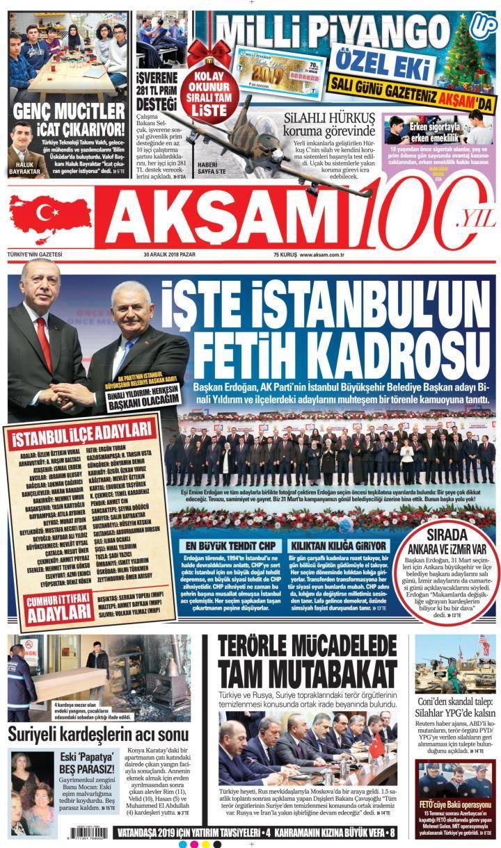 * Günün Ulusal Gazete Manşetleri – 30 12 2018Ulusal Gazetelerin 1. sayfaları Haber Merkezi Yayınlanma: 30.12.2018 - 11:50 Son güncellenme: 29.01.2025 - 05:15 Akşam