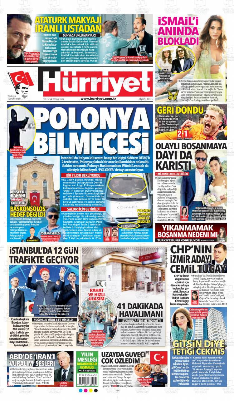 Günün Ulusal Gazete Manşetleri – 31 01 2024Ulusal Gazetelerin 1. sayfaları Haber Merkezi Yayınlanma: 31.01.2024 - 11:50 Son güncellenme: 28.01.2025 - 03:17 Hürriyet