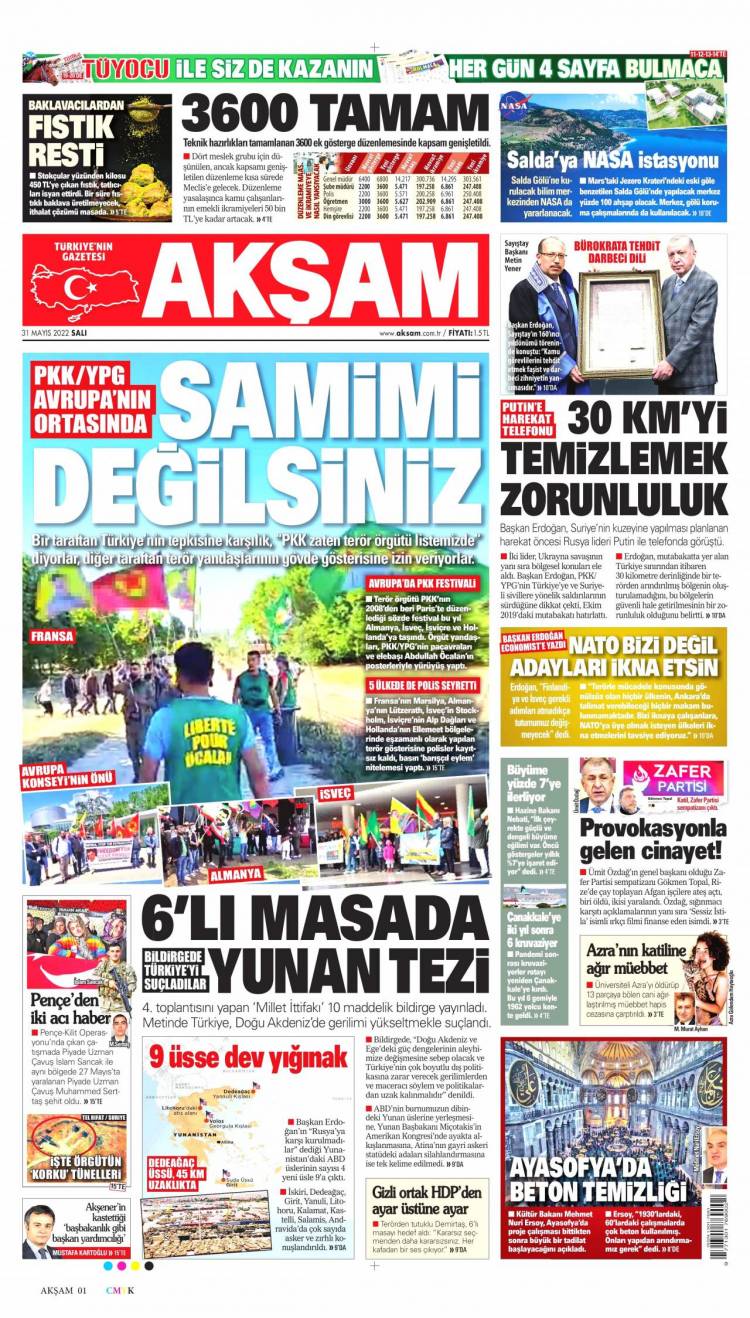 * Günün Ulusal Gazete Manşetleri – 31 05 2022Ulusal Gazetelerin 1. sayfaları Haber Merkezi Yayınlanma: 31.05.2022 - 11:50 Son güncellenme: 28.01.2025 - 11:35 Akşam