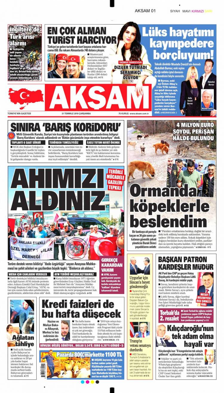 * Günün Ulusal Gazete Manşetleri – 31 07 2019Ulusal Gazetelerin 1. sayfaları Haber Merkezi Yayınlanma: 31.07.2019 - 11:50 Son güncellenme: 29.01.2025 - 01:58 Akşam