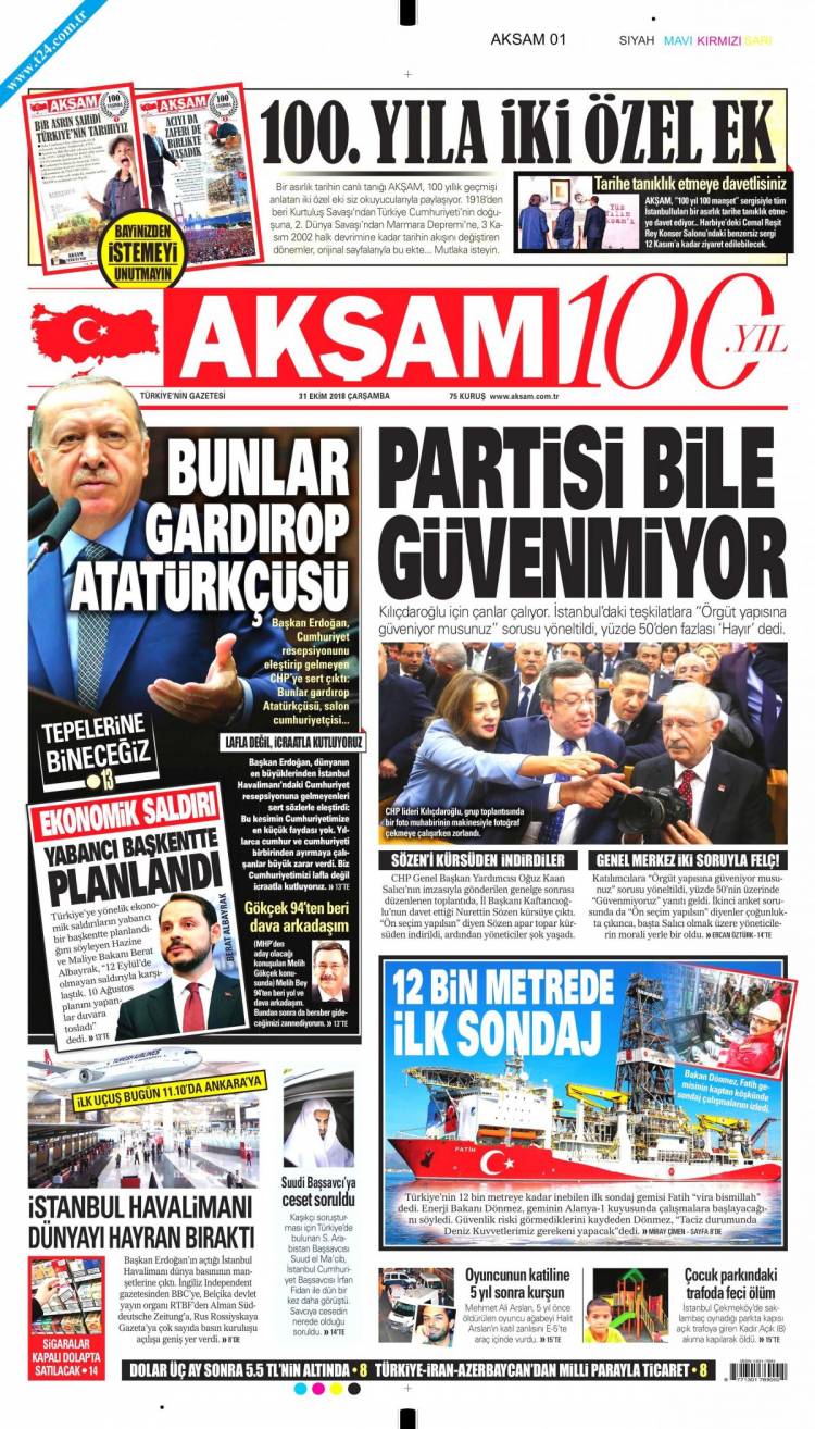 Günün Ulusal Gazete Manşetleri – 31 10 2018Ulusal Gazetelerin 1. sayfaları Haber Merkezi Yayınlanma: 31.10.2018 - 11:50 Son güncellenme: 29.01.2025 - 06:20 Akşam