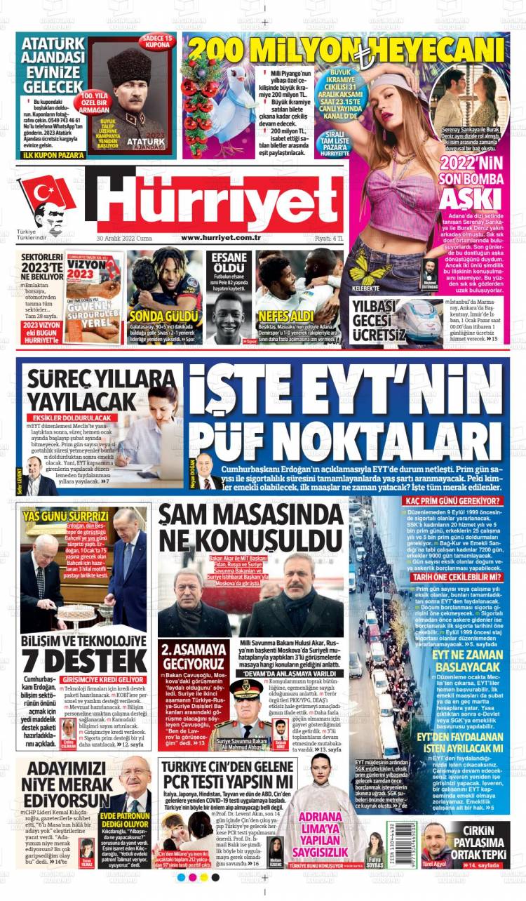 Günün Ulusal Gazete Manşetleri – 31 12 2022Ulusal Gazetelerin 1. sayfaları Haber Merkezi Yayınlanma: 31.12.2022 - 11:50 Son güncellenme: 28.01.2025 - 08:45 Hürriyet