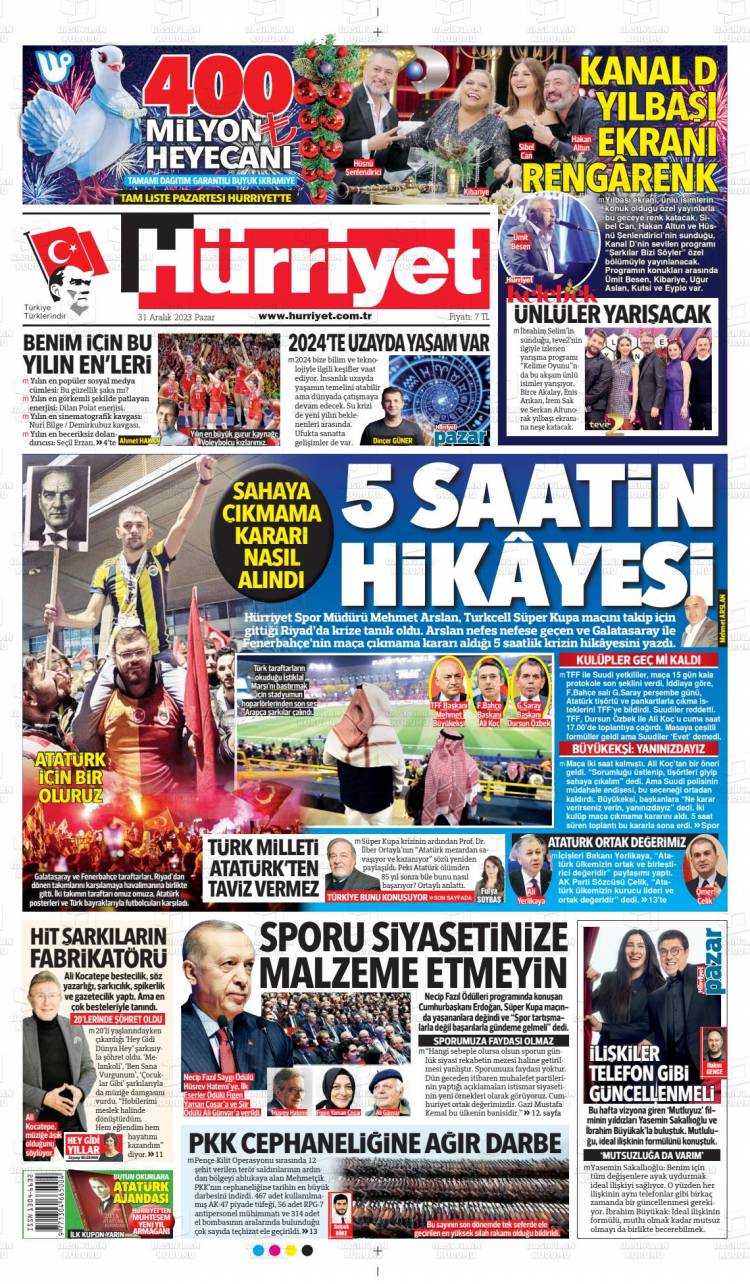Günün Ulusal Gazete Manşetleri – 31 12 2023Ulusal Gazetelerin 1. sayfaları Haber Merkezi Yayınlanma: 31.12.2023 - 11:50 Son güncellenme: 28.01.2025 - 03:46 Hürriyet